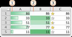 Celle-ci est devenues plus complexe avec des mises en formes contitionnelles qui applique formatages relatifs à la plage de données à laquelle elles ont été appliquées. Voici les barres de données :